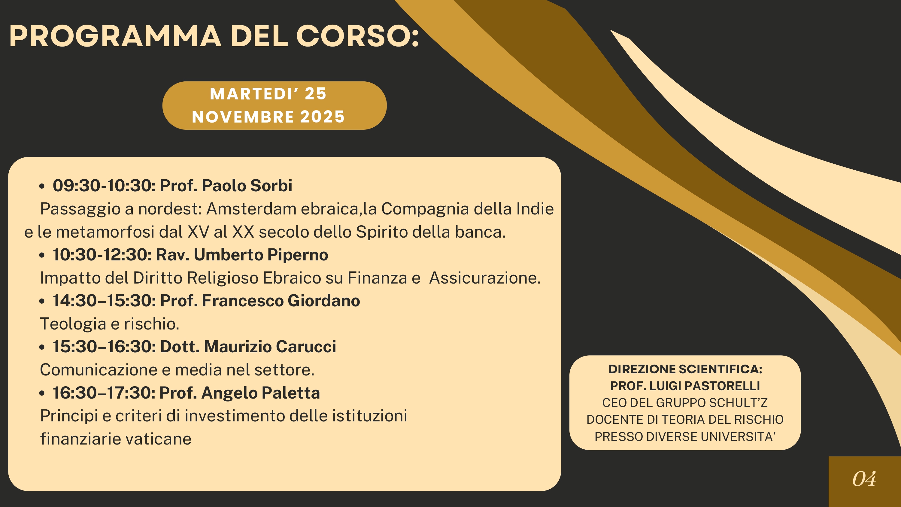 Il coordinamento del Comitato Scientifico è affidato al Direttore Tecnico di Schult’z Prof. Luigi Pastorelli